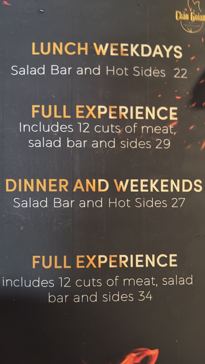 Chão Goiano Brazilian Steakhouse and Bakery Menu